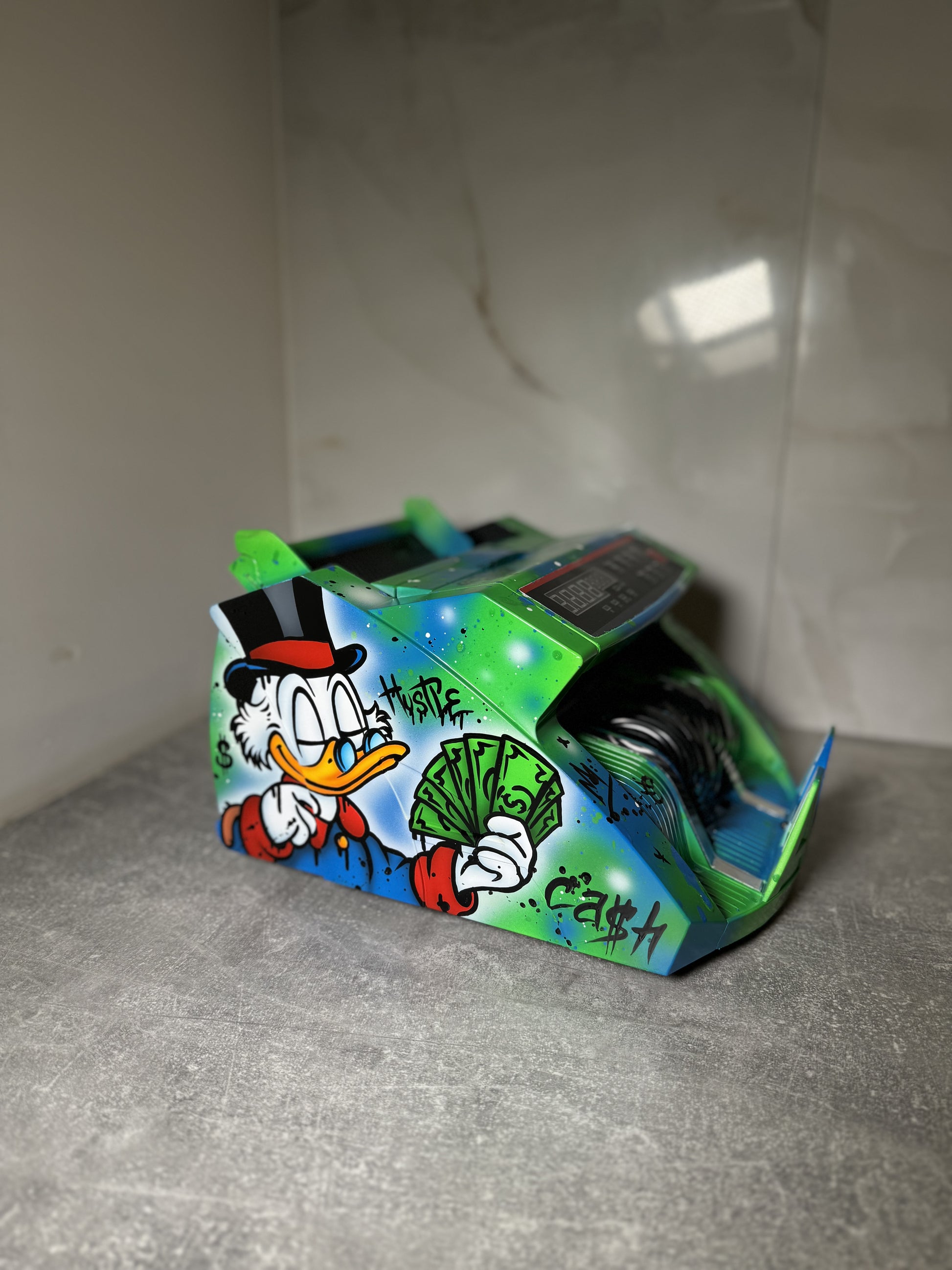 Every banknote counter is hand-painted using high-quality acrylic paints, followed by a protective glossy varnish that ensures durability and gives each product an elegant finish.