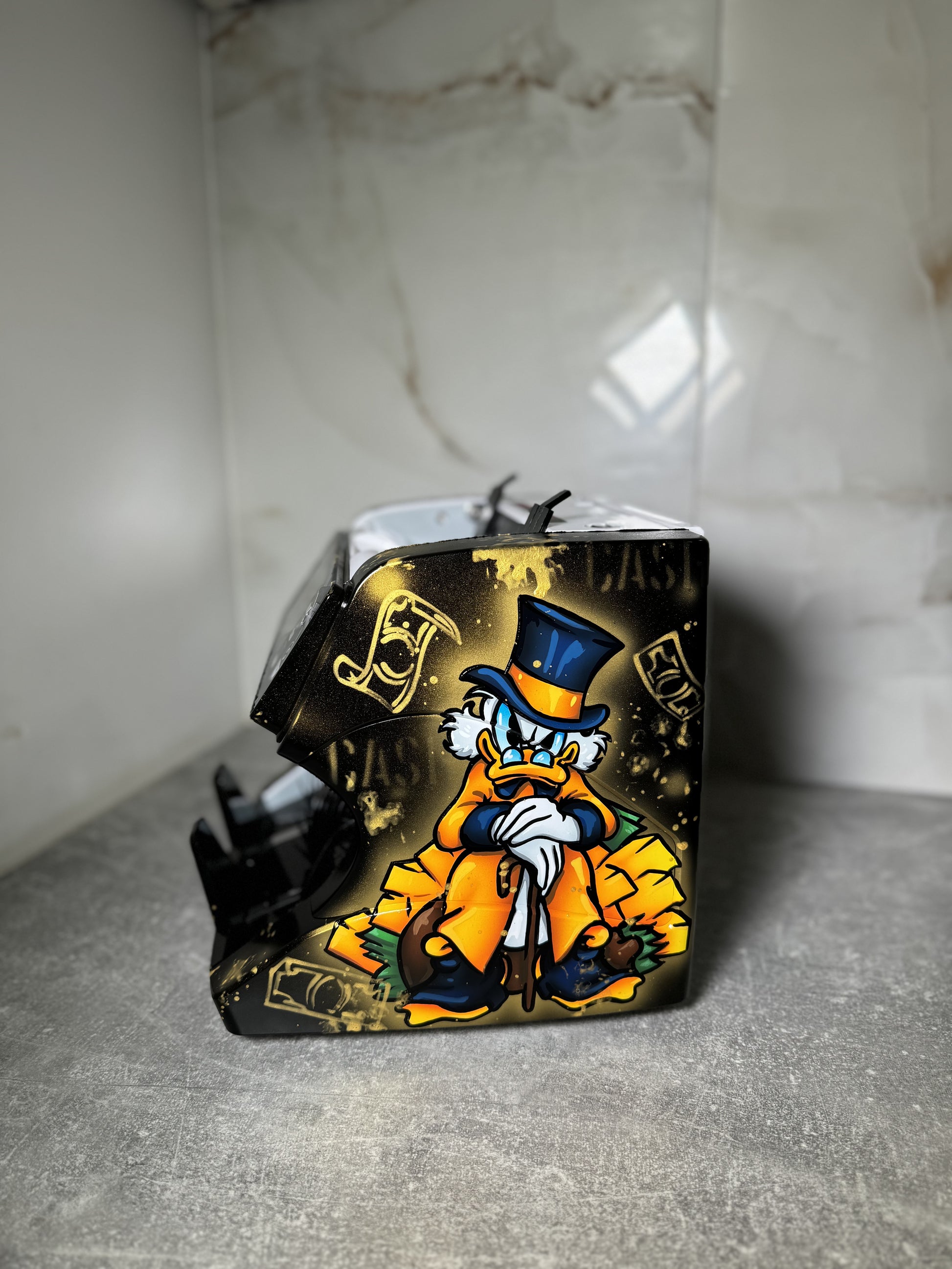 Every banknote counter is hand-painted using high-quality acrylic paints, followed by a protective glossy varnish that ensures durability and gives each product an elegant finish.