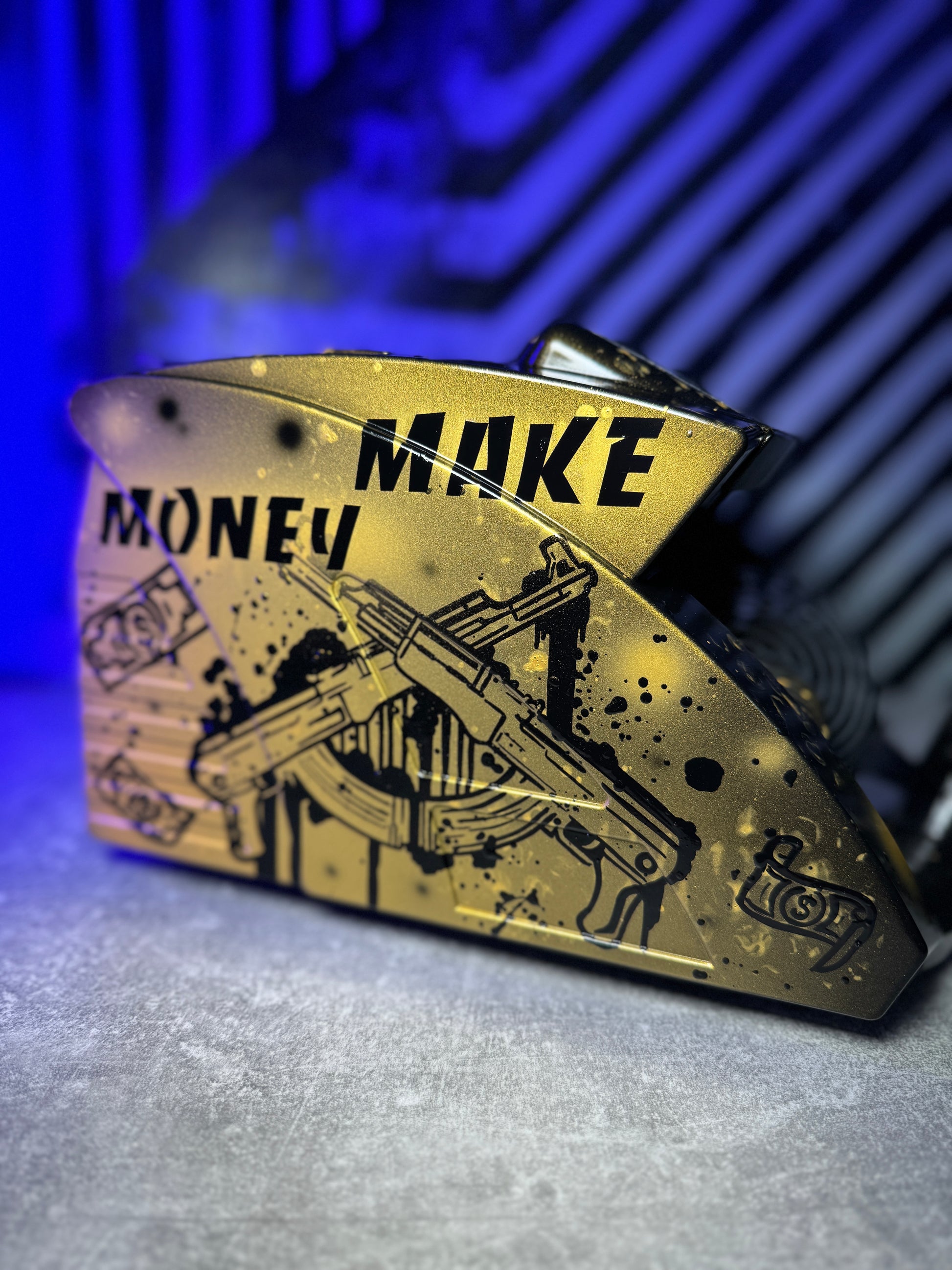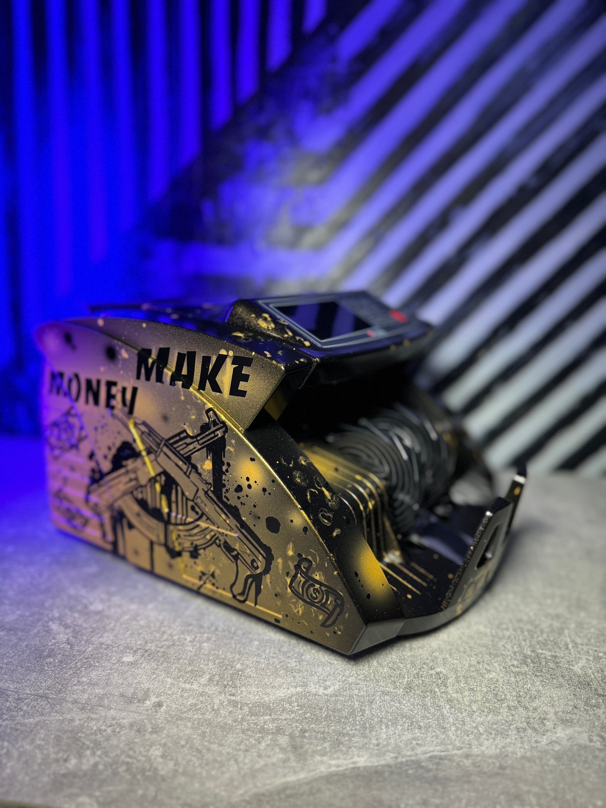 Every banknote counter is hand-painted using high-quality acrylic paints, followed by a protective glossy varnish that ensures durability and gives each product an elegant finish.